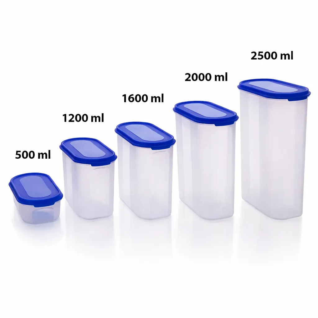• 5-piece food storage container set ideal for storing dry foods, snacks, pulses, and spices